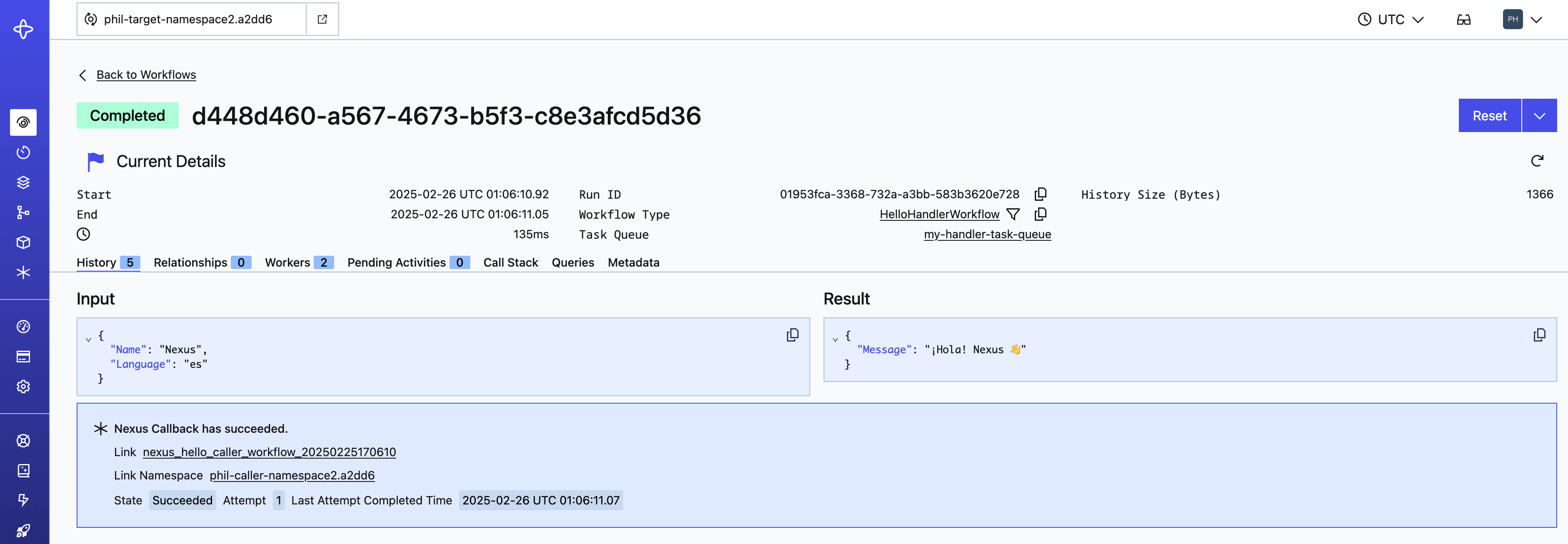 • To a Nexus Operation event in the caller's Workflow history.
